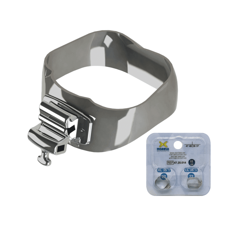 Las bandas Morelli fabricadas de acero inoxidable, con diseño anatómico, reproducen la morfología de los molares, permitiendo una óptima adaptación.