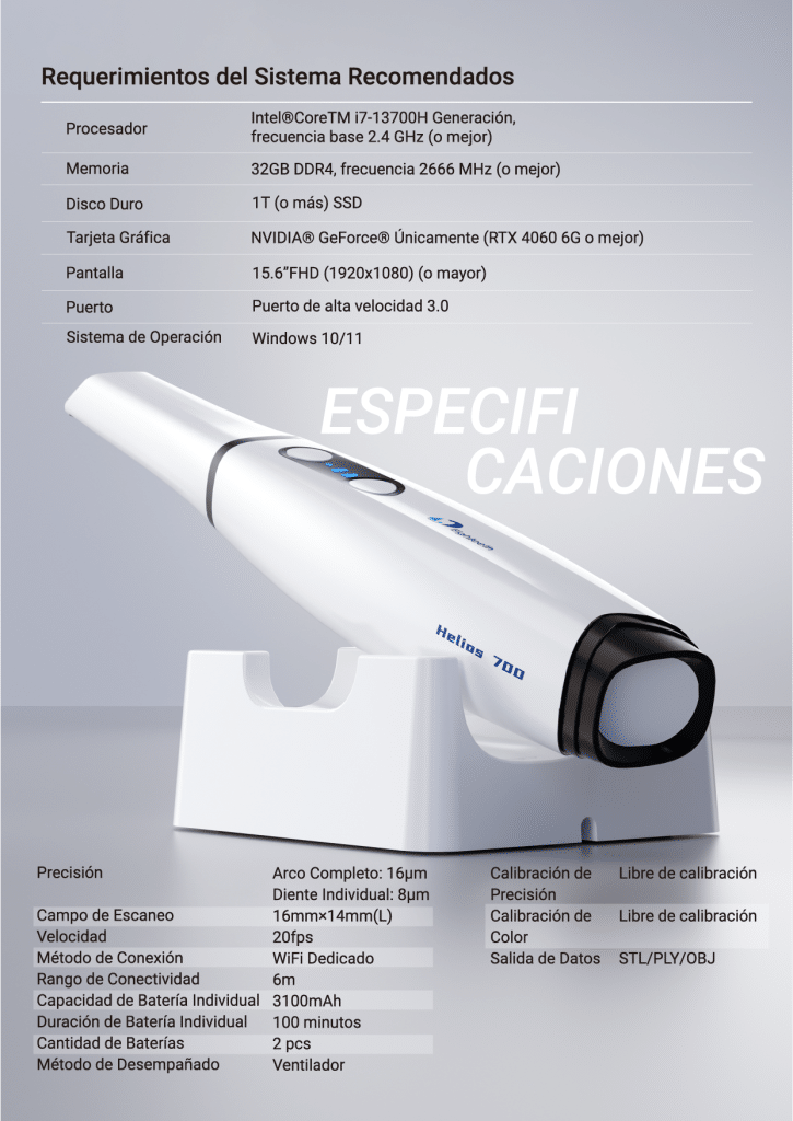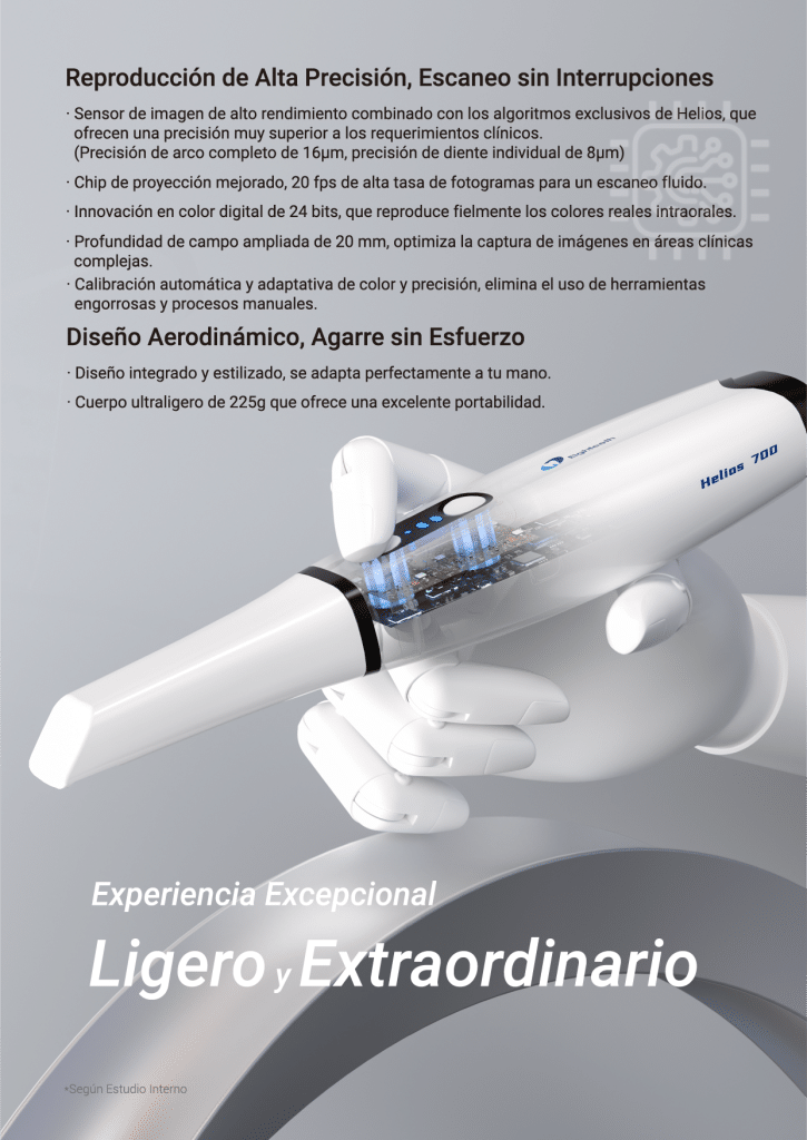 - Exactitud de alta resolución: ofrece hasta 16 µm en arcada completa y 8 µm en diente individual, permitiendo reproducir detalles clínicos con fiabilidad.
