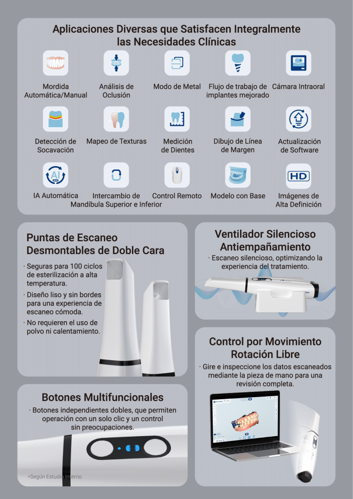 - Puntas escaneadoras desmontables (autoclavables hasta 100 ciclos)