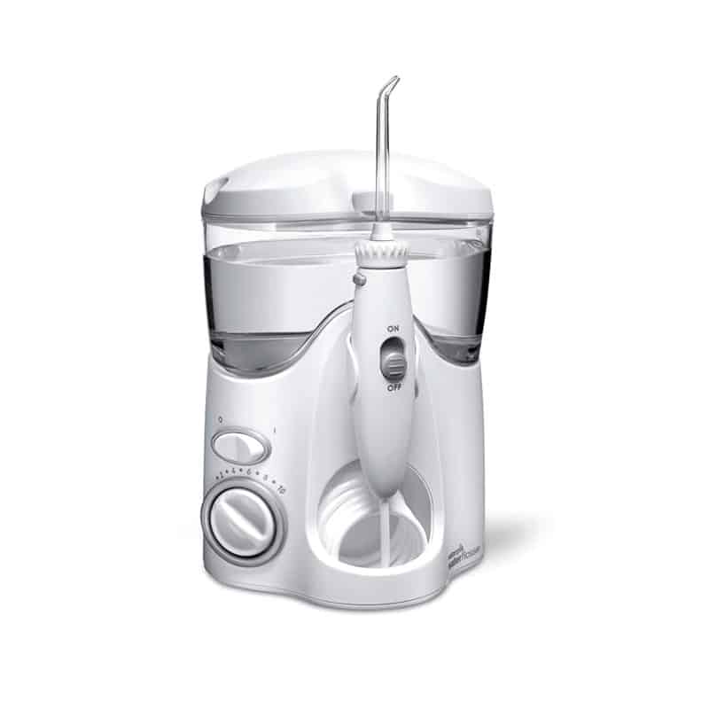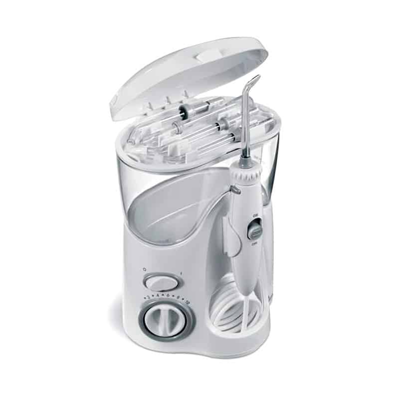 Irrigador bucal que mediante un chorro de agua pulsante retira la placa dental de manera eficiente: Elimina hasta el 99.9% de placa dental de las zonas tratadas.