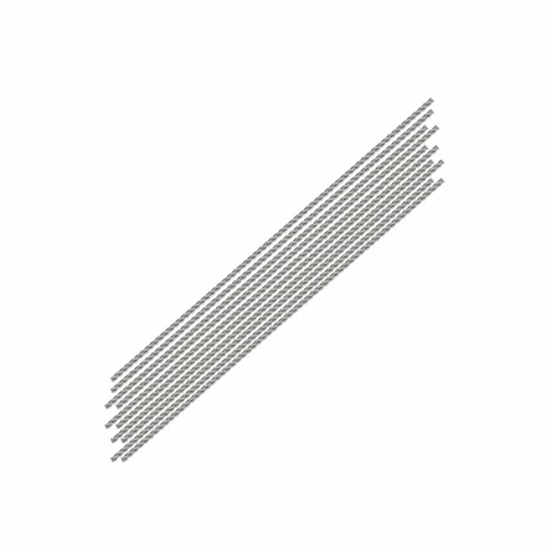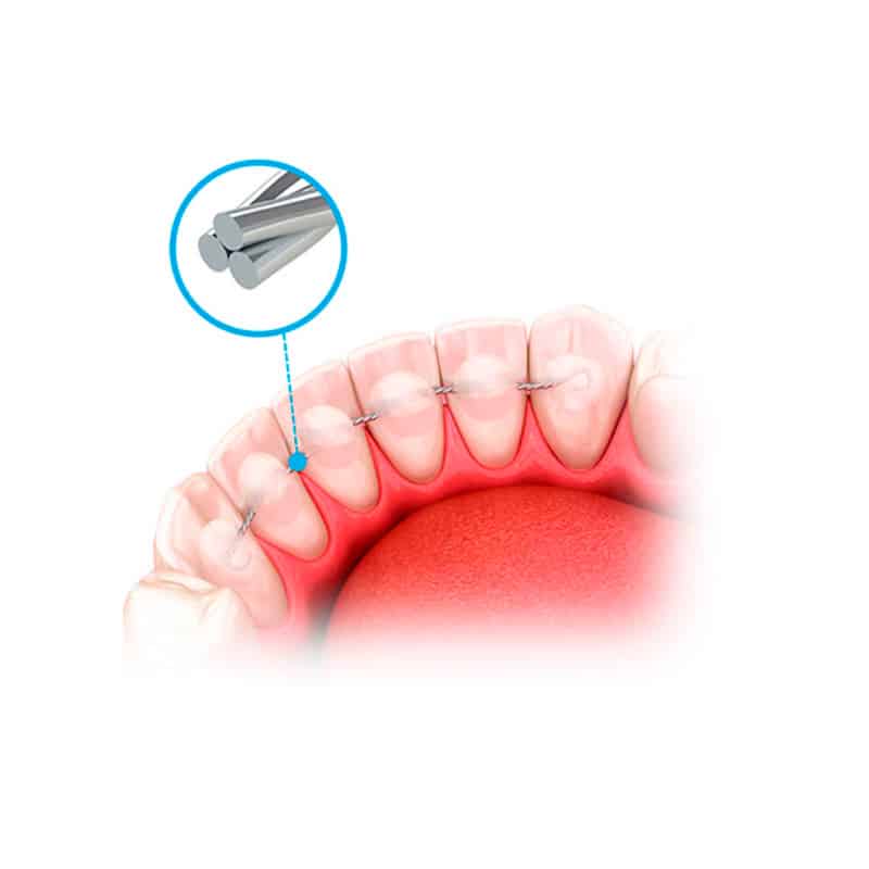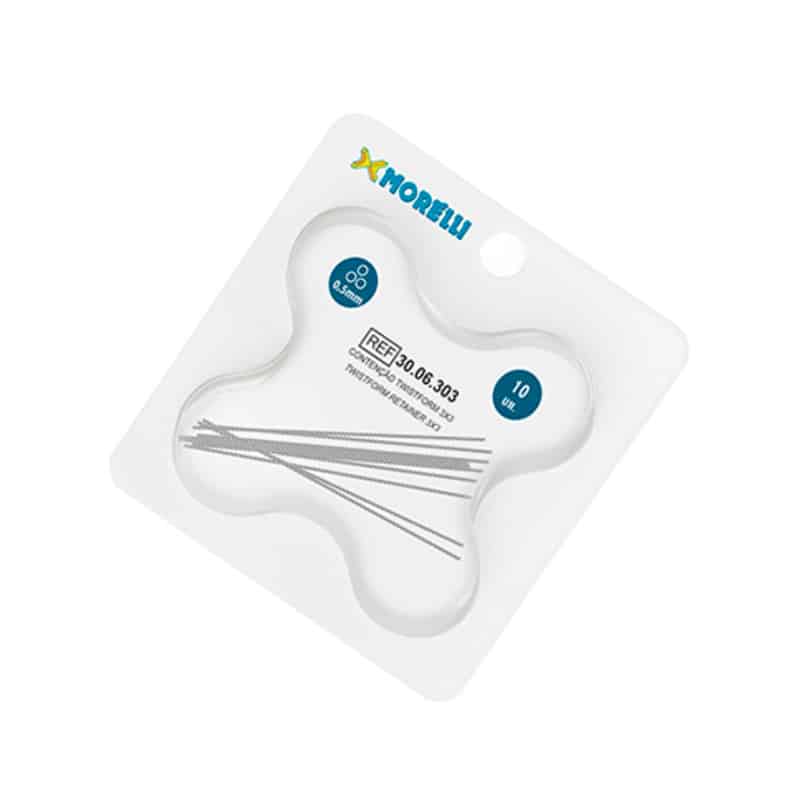 El retenedor TwistForm tiene una combinación de 3 alambres de acero inoxidable (CrNi) perfectamente trenzados. Esto garantiza un perfil bajo, para mayor comodidad del paciente y menor riesgo de aflojamiento de la contención. Esta combinación de alambres se somete a un tratamiento térmico especial, que hace que el retenedor sea más maleable, con un alojamiento perfecto y permite ajustar el tamaño del retenedor 3×3 para cualquier paciente.