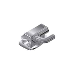 El gancho del ifit está situado en el borde mesial y tiene un ángulo casi horizontal para que no se extienda más allá de la superficie facial. De esta forma mejora el confort del paciente y hace que el cementado sea menos engorroso.